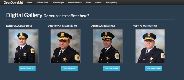 Helsby and the Lucy Parsons team hope that OpenOversight will help close that information gap. And she insists that it won’t endanger officers on sensitive undercover assignments, or expose others to risk of reprisal. The web gallery collects only photos of uniformed officers, she says. Its purpose is simply to help even out the power imbalance between civilian and police surveillance.