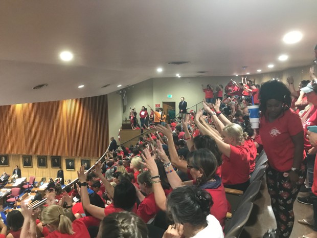 Rittenhouse stayed in the Senate gallery until 3 a.m. Thursday. “When I awoke this morning to hear that none of our amendments passed (including smaller class sizes, smaller student-to-counselor ratios) but the Governor signed the deal he made with himself that is so woefully inadequate, I did not feel resigned as I had expected to,” she wrote in an email to CityLab on Thursday evening. “I felt, as many of my peers felt, fired up and ready to continue this fight. … [I]f our senators aren’t willing to do it, Arizona educators have shown that they are.”